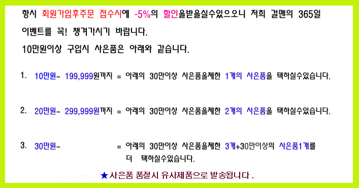 ¡á1+1+»çÀºÇ°-5%ÇÒÀÎ 365ÀÏEVENT !!!¡á [0] °É¸Ç 2025-02-17 14654 19
