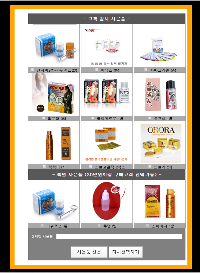 ¡Ø»çÀºÇ°¼±Åýÿ¡ °°Àº°¡°Ý´ëÀÇ ´Ù¸¥ Á¦Ç°À» ¿øÇϽðųª ¾à°£ÀÇ ±Ý¾×À» Ãß°¡°¡´ÉÇÏ¿© ´Ù¸¥Á¦Ç°À»