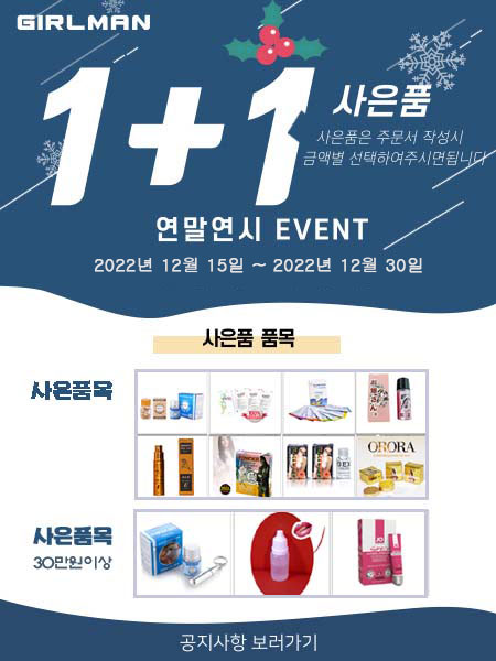 ¡á2021¿¬¸»°ú2022¿¬½Ã¿¡ 1+1+»çÀºÇ°a À̺¥Æ®.¡á°É¸Ç [0] °É¸Ç 2021-12-10 32350 23