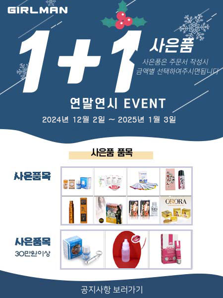 ¡á2024³â ¿¬¸»¿¬½Ã 1+1+»çÀºÇ°a À̺¥Æ®¡á [0] °É¸Ç 2024-12-01 13588 17